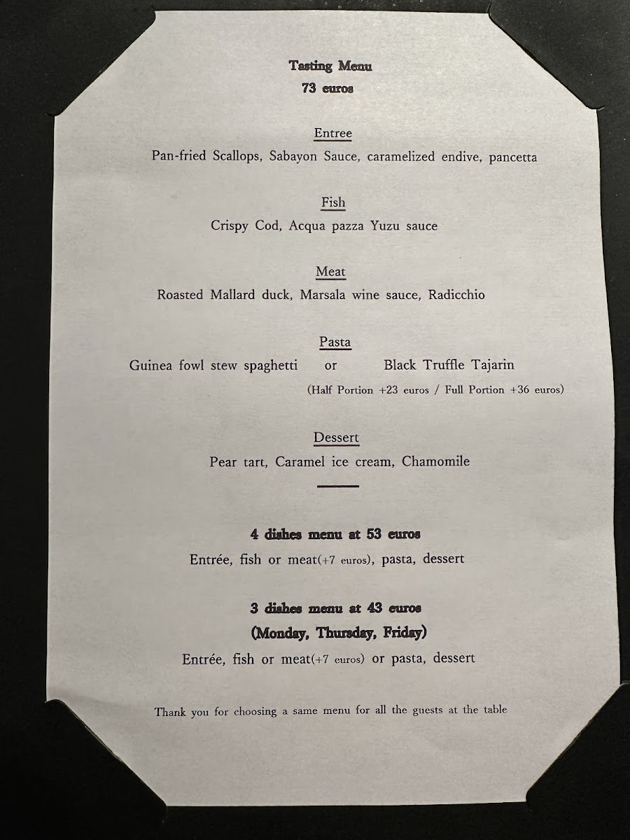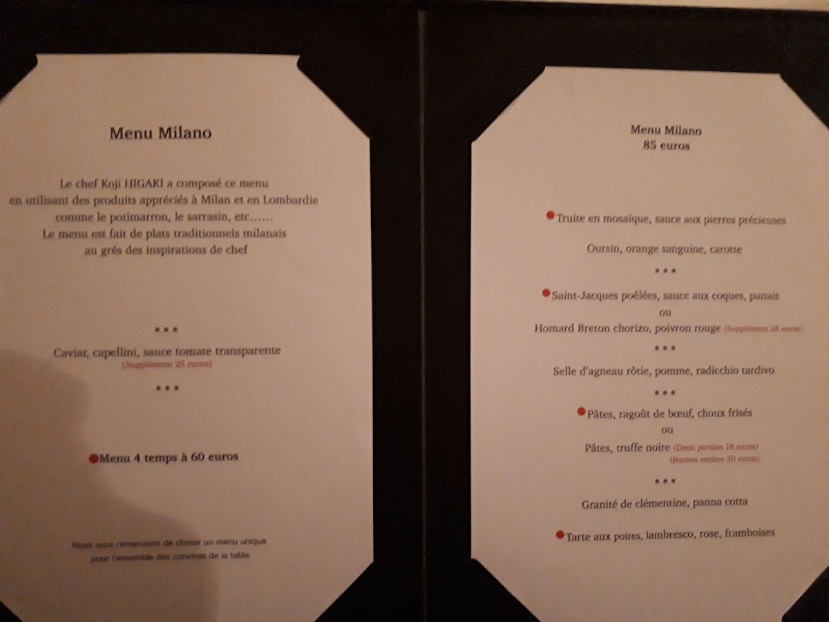 The menu at Restaurant L'inconnu Par Koji Higaki leaves a lasting impression through its refined balance of French technique and subtle Japanese influence, with each dish showing careful attention to flavor, texture, and presentation. Standout savory plates like Roasted Mallard Duck Marsala Wine Sauce Radicchio deliver deep, rich flavors balanced by gentle bitterness, while the Crispy Cod Acqua Pazza Yuzu Sauce offers a lighter yet equally elegant experience, combining delicate seafood with bright citrus notes. The desserts continue this thoughtful approach, with Glace Au Fromage Blanc Citron providing a refreshing, lightly tangy finish, and the Mont-Blanc Glace Café Latte presenting a more indulgent, aromatic conclusion to the meal. Overall, the menu feels cohesive and carefully curated, showcasing creativity without losing harmony, and leaving a memorable final impression through both its savory highlights and distinctive desserts.